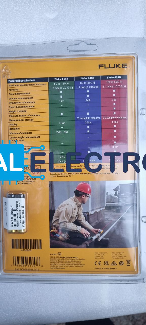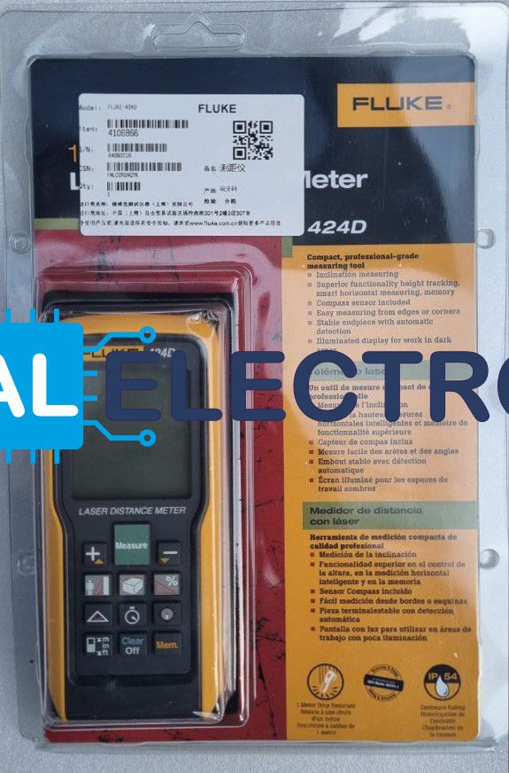 Fluke 424D представляет собой самую продвинутую версию лазерного дальномера, оснащенную разнообразными функциями для экономии времени в самых различных ситуациях. Доступное расстояние измерения — до 100 метров (330 футов). Большой четырехстрочный дисплей, встроенный компас и датчик наклона на 180º для измерения высоты.