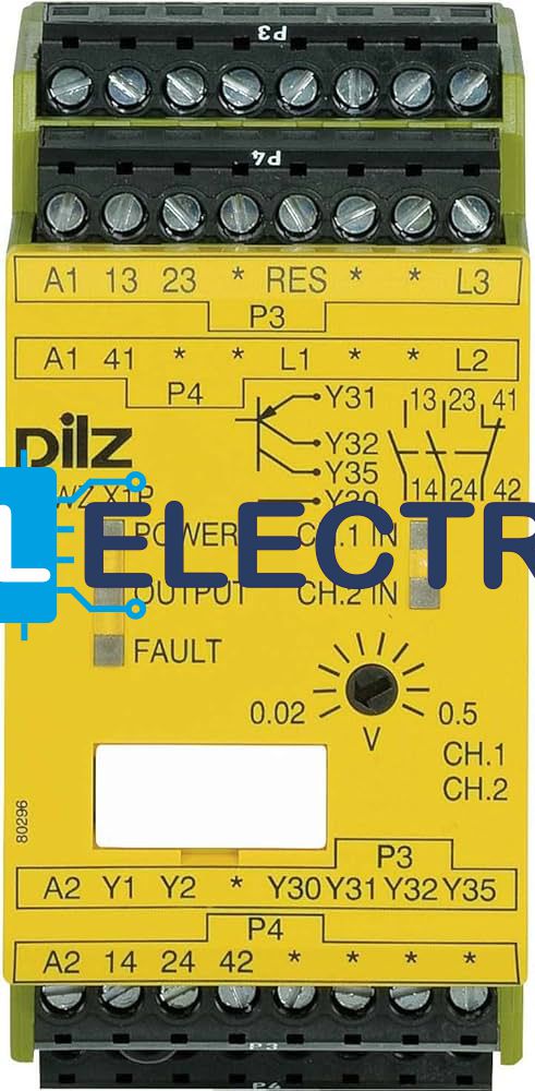 Реле безопасности Pilz PSWZ X1P 24 → 240 V ac/dc Safety Relay Single or Dual Channel With 2 Safety Contacts